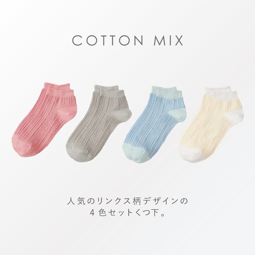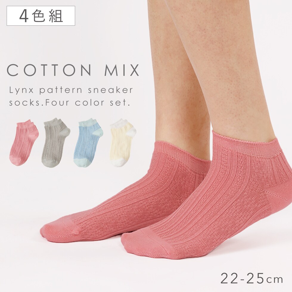 スニーカー ソックス レディース 靴下 4色組 22-25cm 春夏 夏用 くるぶし ショート 靴下 くるぶしソックス スニーカー丈 ローソックス 4足 セット まとめ買い リンクカジュアルスニーカー丈ソックス