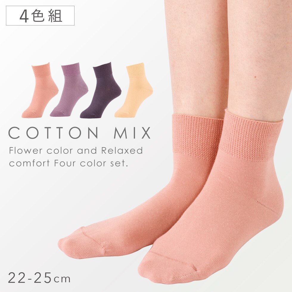 靴下 レディース 履き口 ゆったり カラフル 4色組 22-25cm 口ゴムゆったり ソックス 4足 セット まとめ買い ゆるい 締め付けない ゆったりネイチャーカラーソックス フラワーカラー