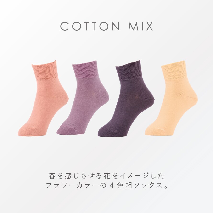 春らしいフラワーカラーの4色組ソックスです。