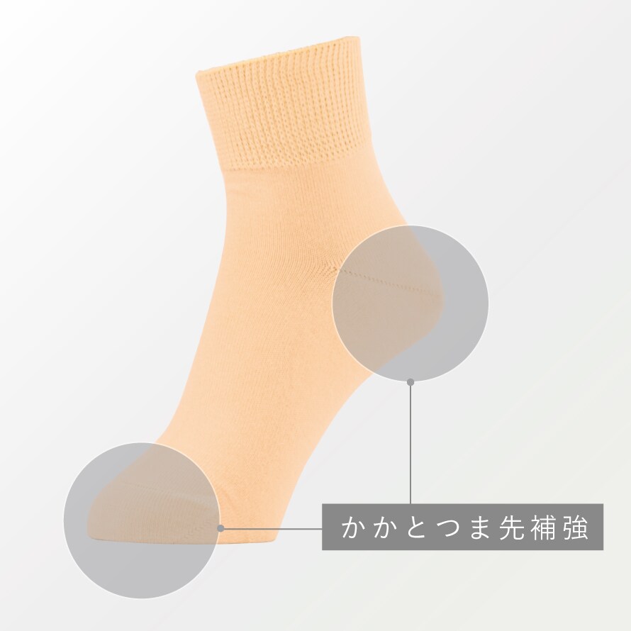 つま先かかと補強で長く履いていただけます。