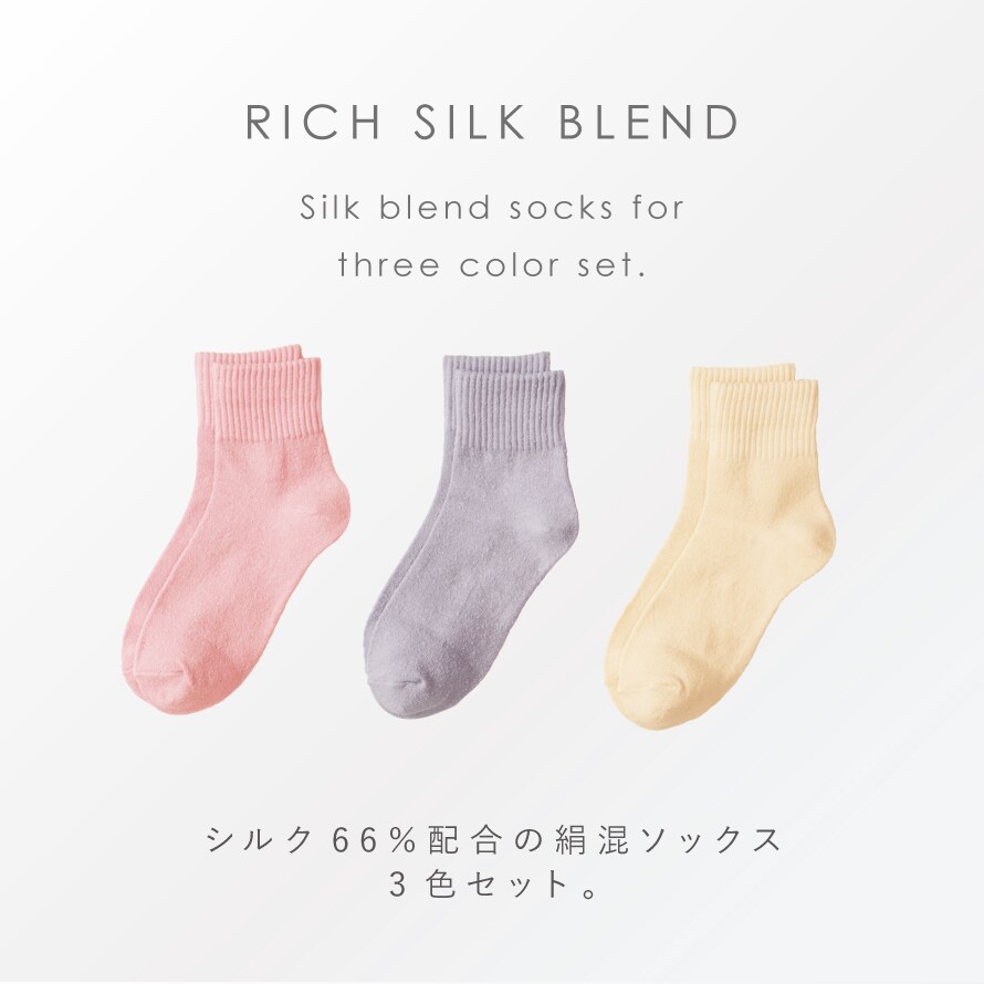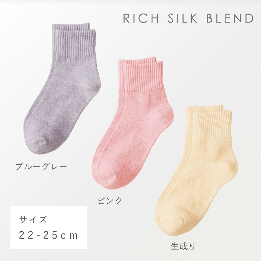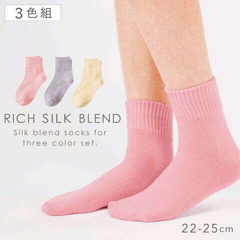 靴下 レディース 3色組 22-25cm シルク ソックス 春夏 夏用 絹 コットン 綿 ずれない 3足 セット さわやかな絹混くつ下