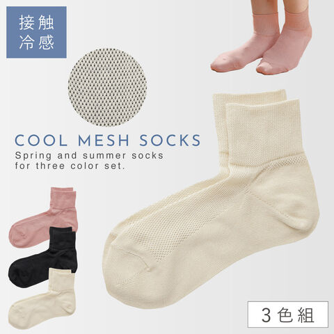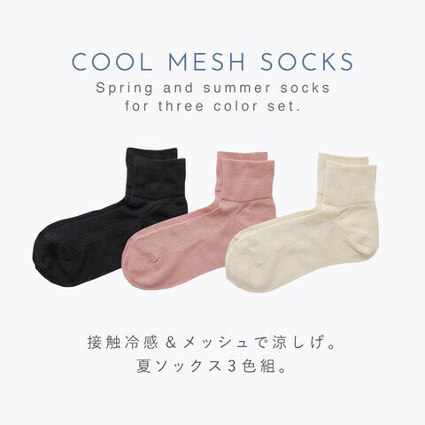 靴下 レディース 夏用 接触冷感 3色組 23-24cm 冷感 速乾 春夏 薄手 涼しい メッシュ 日本製 接触冷感メッシュショート丈L型ヒールソックス