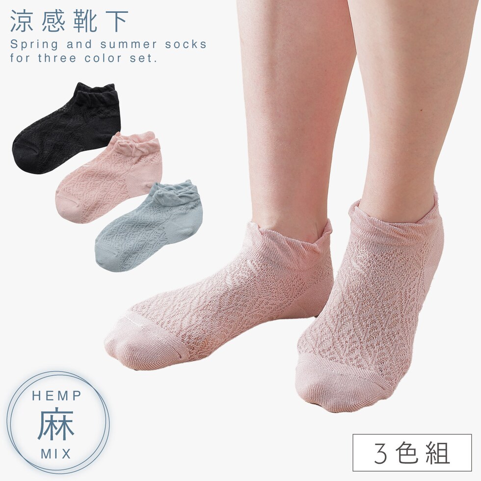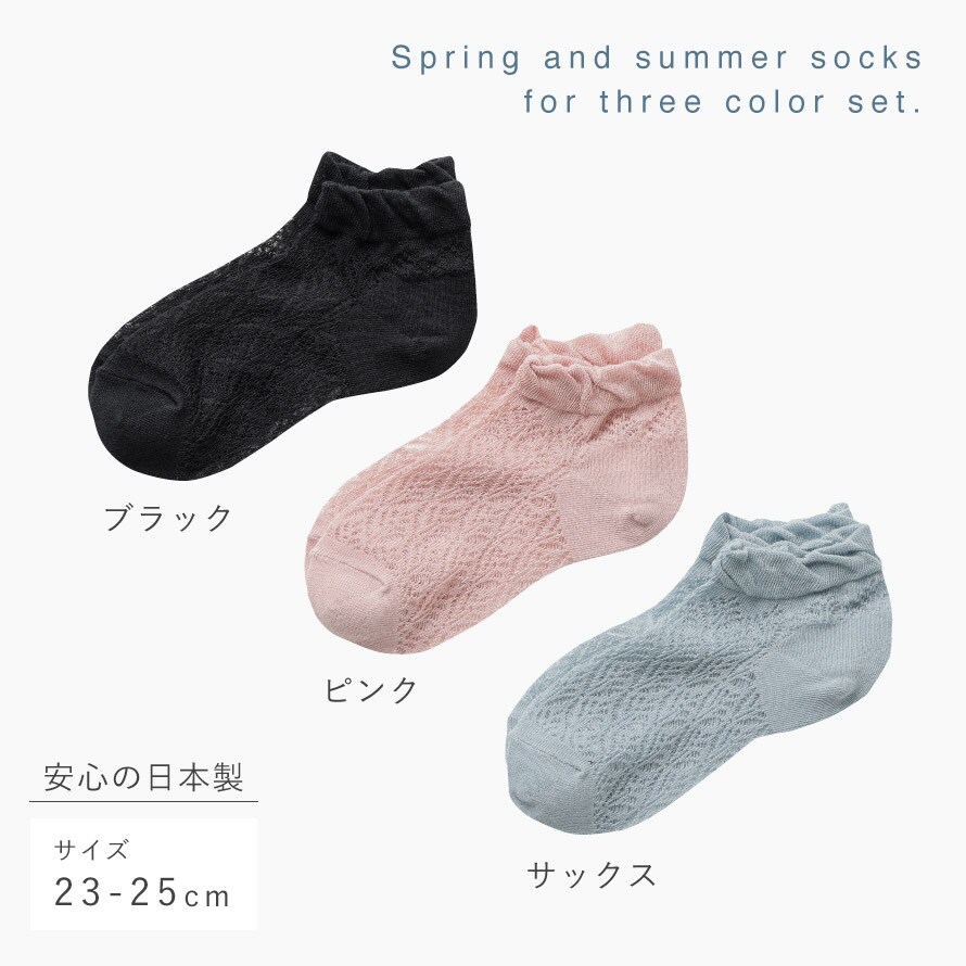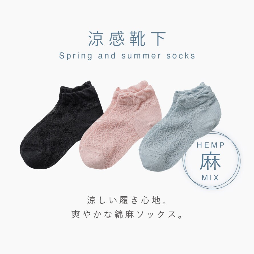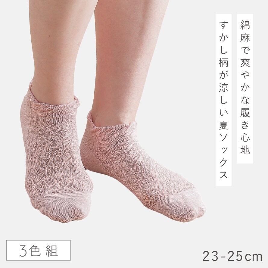 綿麻で爽やかな履き心地。すかし柄の夏ソックス3色セット。