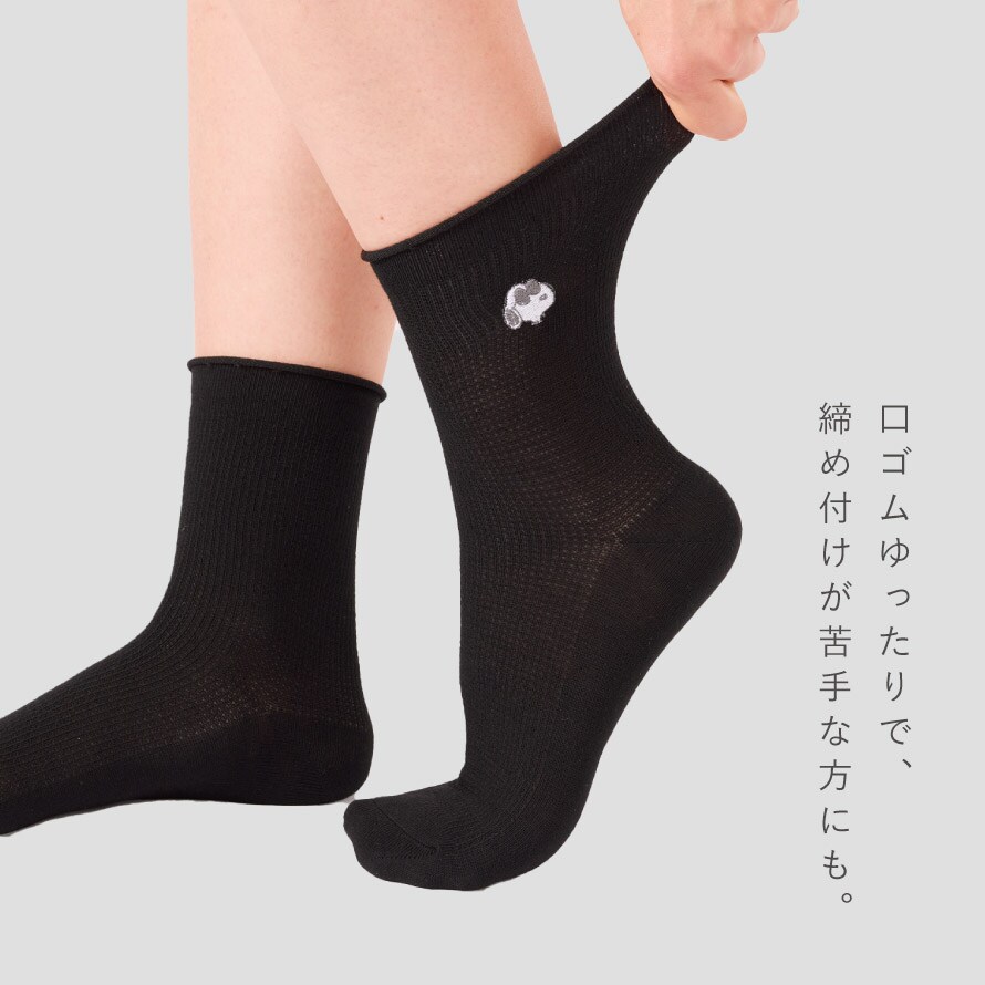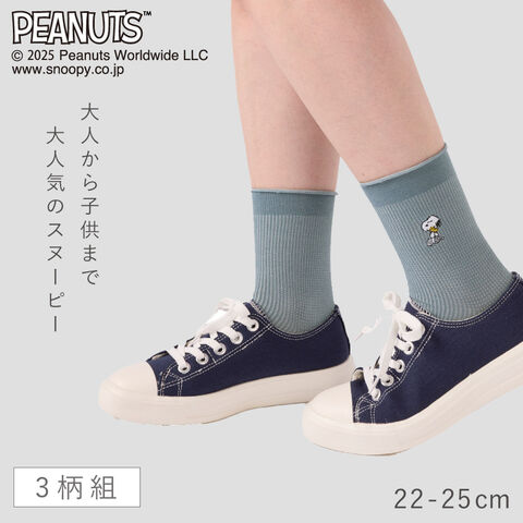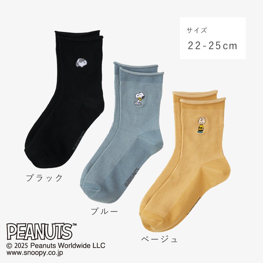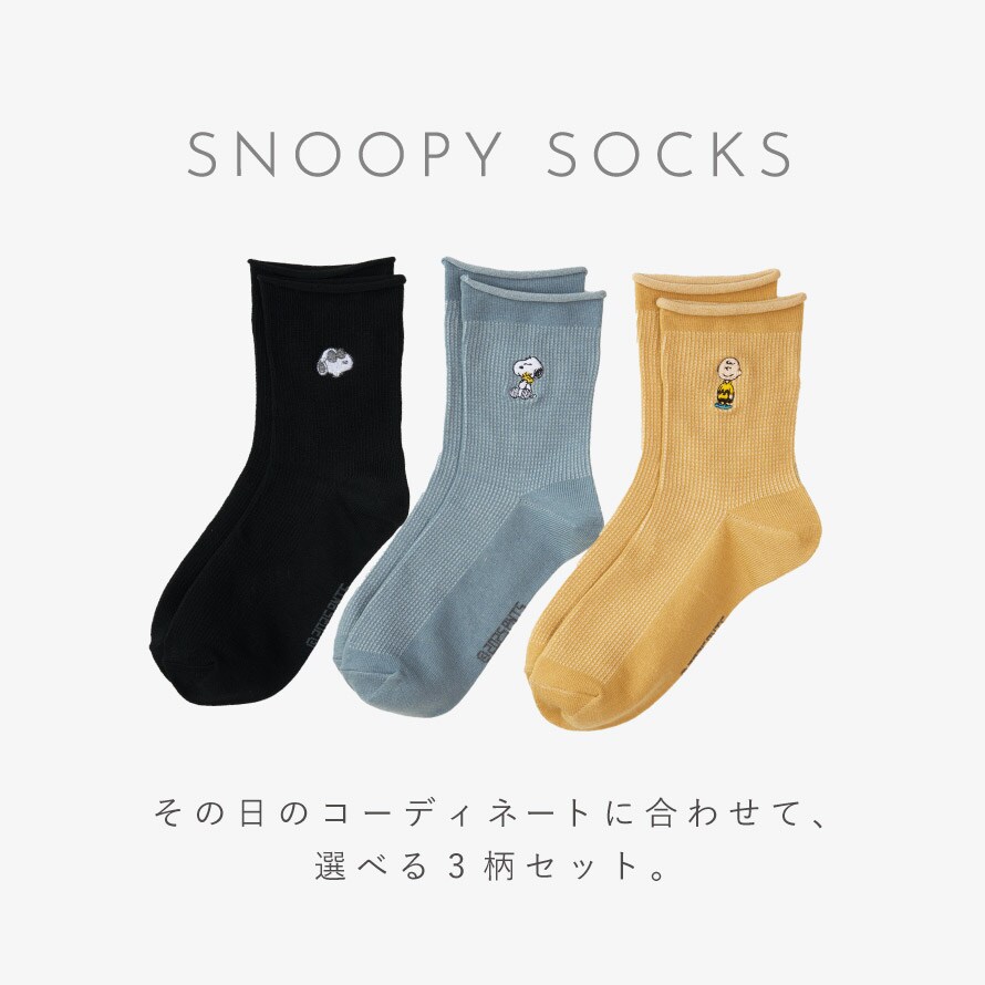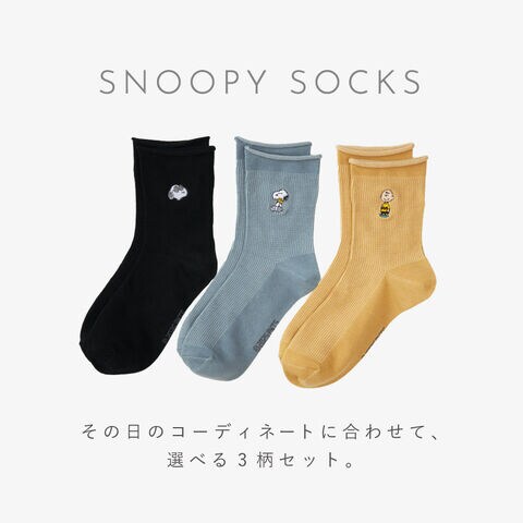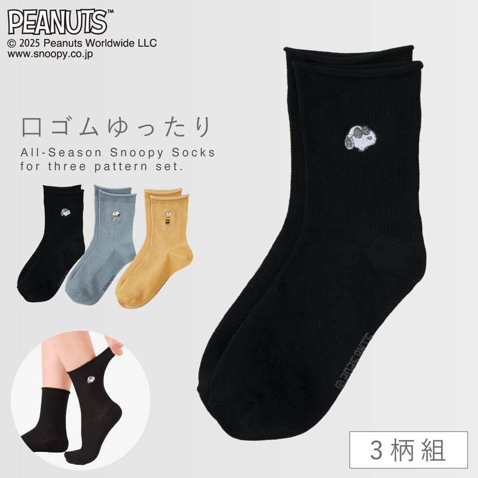 スヌーピー 靴下 レディース 履き口 ゆったり 3柄組 22-25cm snoopy ピーナッツ グッズ 雑貨 クルー丈 ソックス キャラクター まとめ買い 3足 スヌーピー 口ゴムゆったり刺繍ソックス