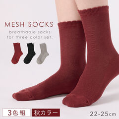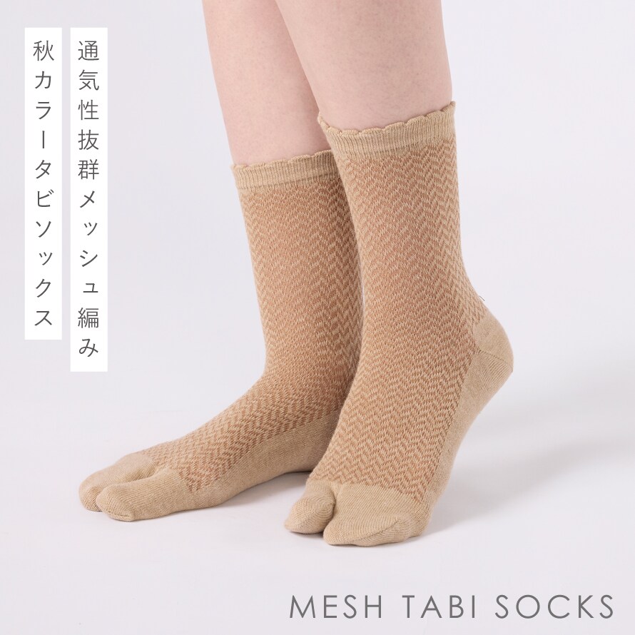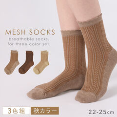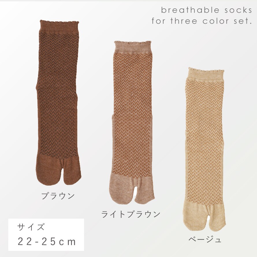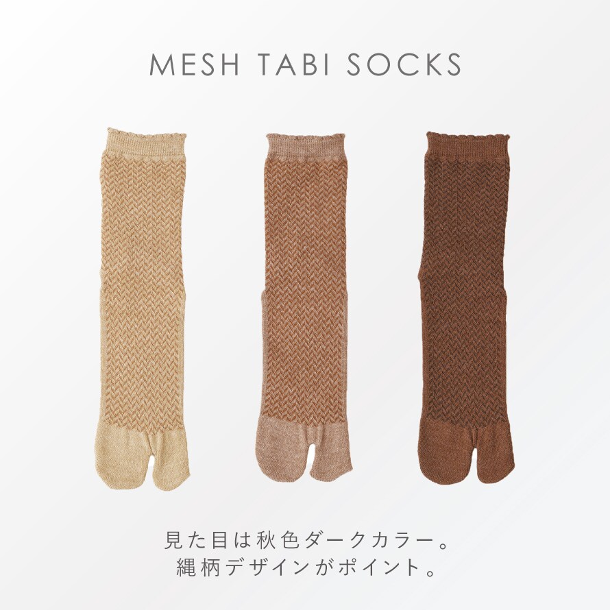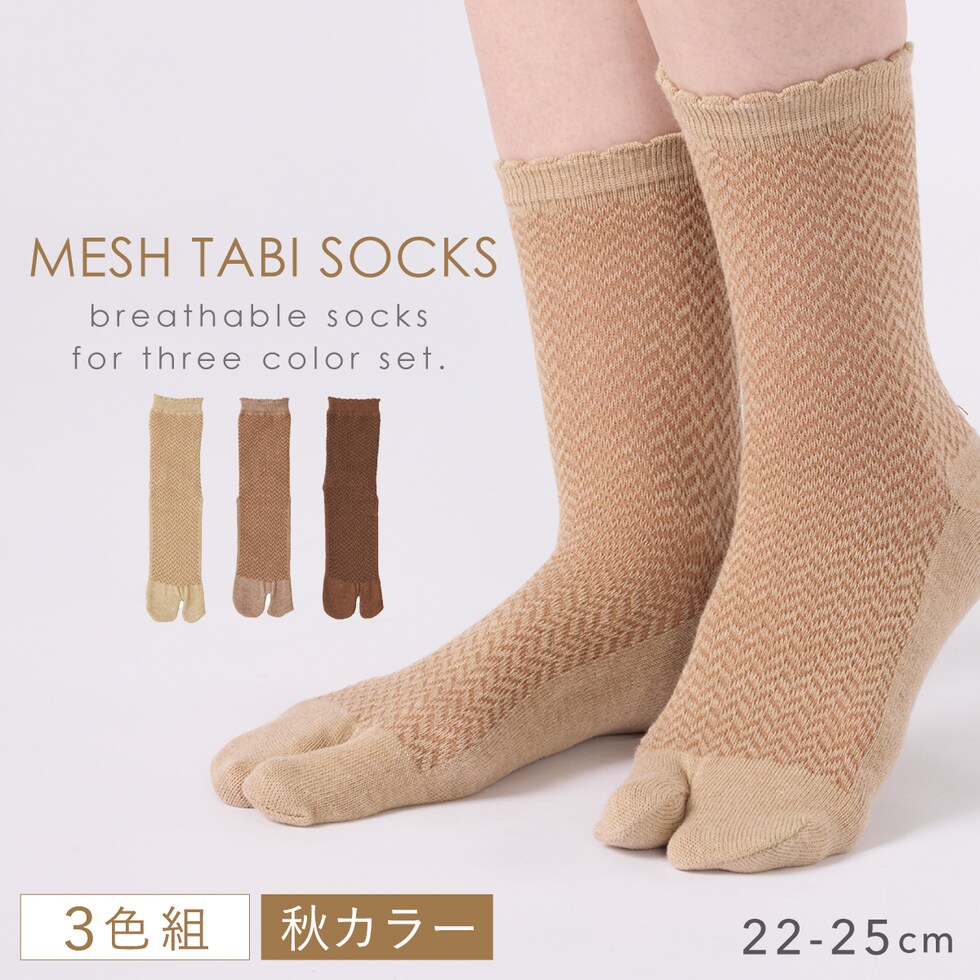 足袋ソックス 靴下 レディース 秋 柄 メッシュ おしゃれ 3色組 22-25cm まとめ買い 3足 セット 茶色 ベージュ 日本製 ダークカラーのメッシュ編みタビ型ソックス 3色組