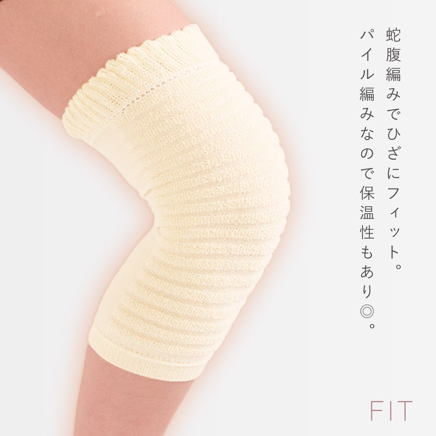 蛇腹編みでひざにフィット。パイル編みなので保温性もあり◎。
