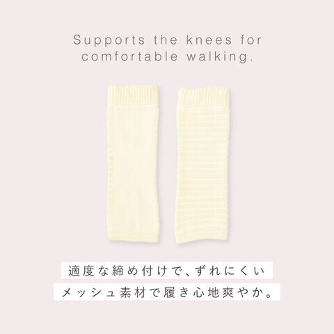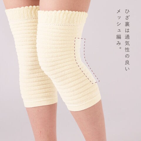 ひざ裏は通気性の良いメッシュ編み。汗をかきやすいひざ裏も気持ちよく使えます。