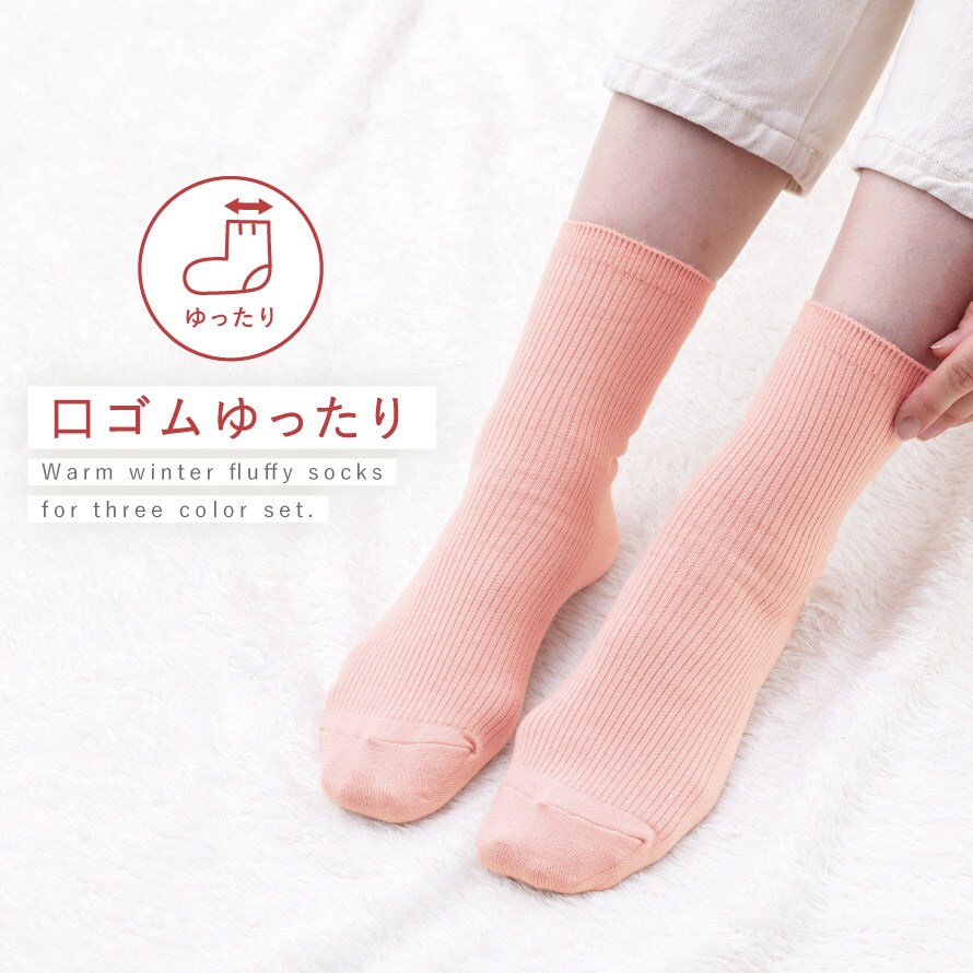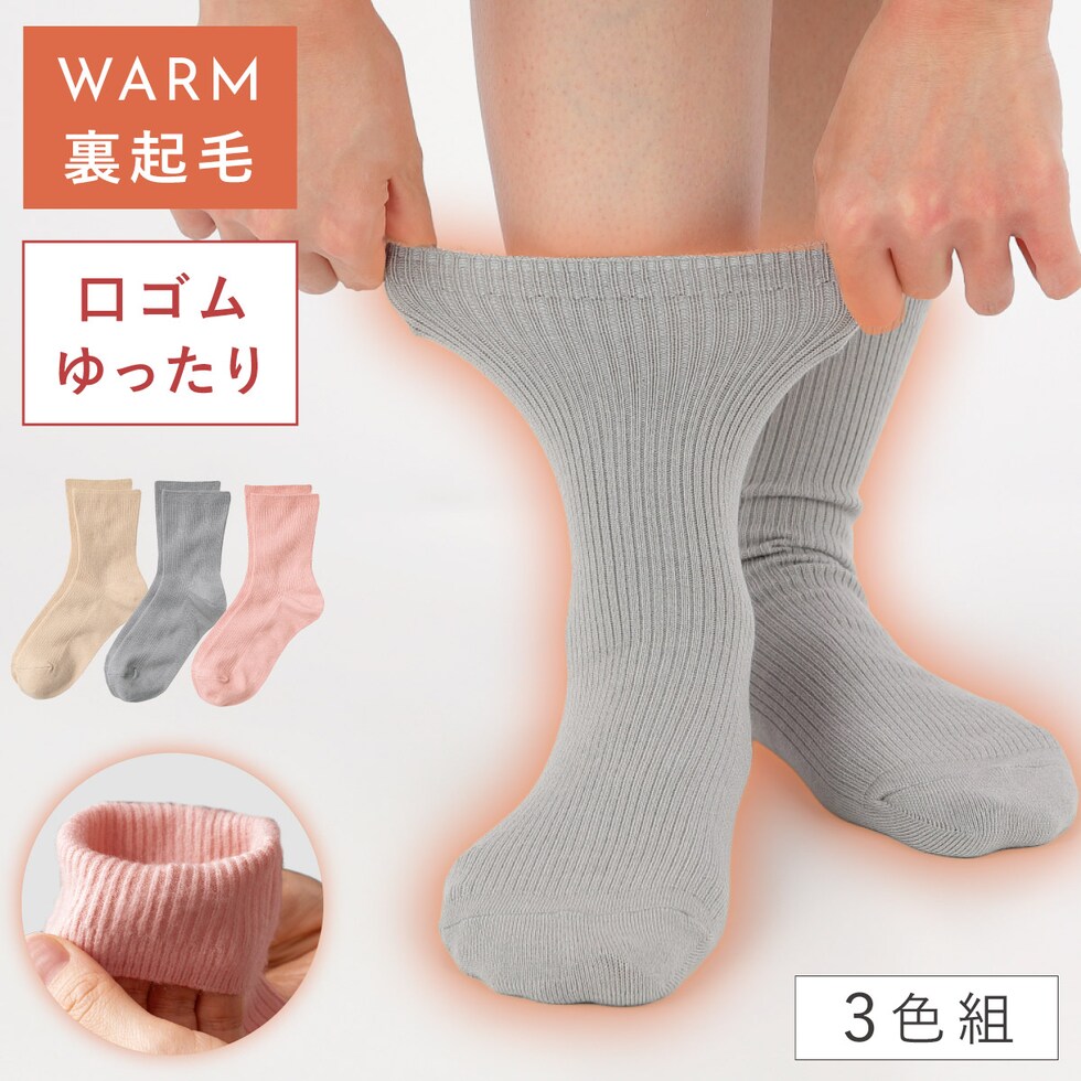 靴下 裏起毛 レディース 暖かい 22-25cm 3色組 履き口 ゆったり 締め付けない 秋冬 暖かい 口ゴムゆったり ゆるい ふんわりタッチ裏起毛ソックス
