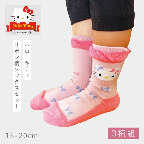 キティちゃん 靴下 子ども キッズ 子供 女の子 15cm 3柄組 15-20cm ハローキティ サンリオ キティ 可愛い 名前が書ける ハローキティ プリティリボンソックス