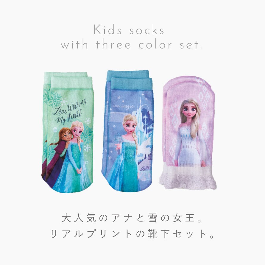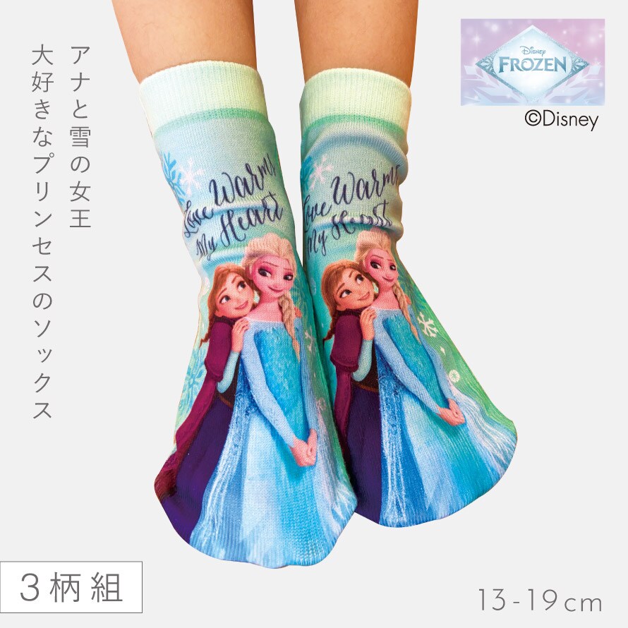 アナと雪の女王 靴下 ディズニープリンセス 子供 3柄組 13-19cm キッズ 子ども 女の子 ディズニー エルサ プリンセス キャラクター 名前が書ける アナと雪の女王ソックス