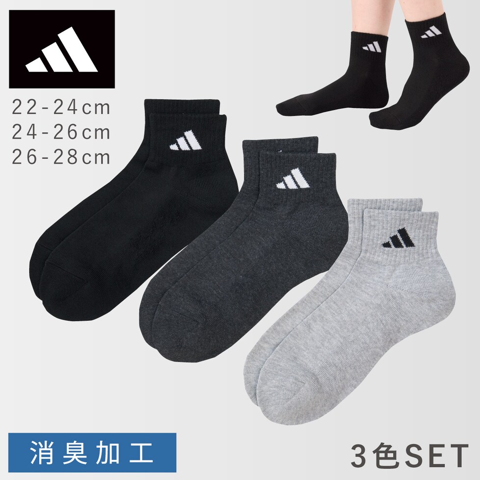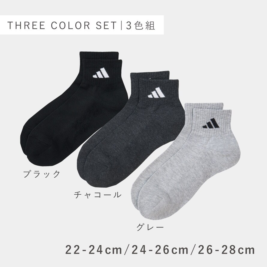 アディダス 靴下 レディース メンズ 3色組 22-24cm 24-26cm 26-28cm adidas アディダスソックス 3足 消臭 クッション 破れにくい スポーツ ブランド アディダス 足底クッションモノトーンソックス