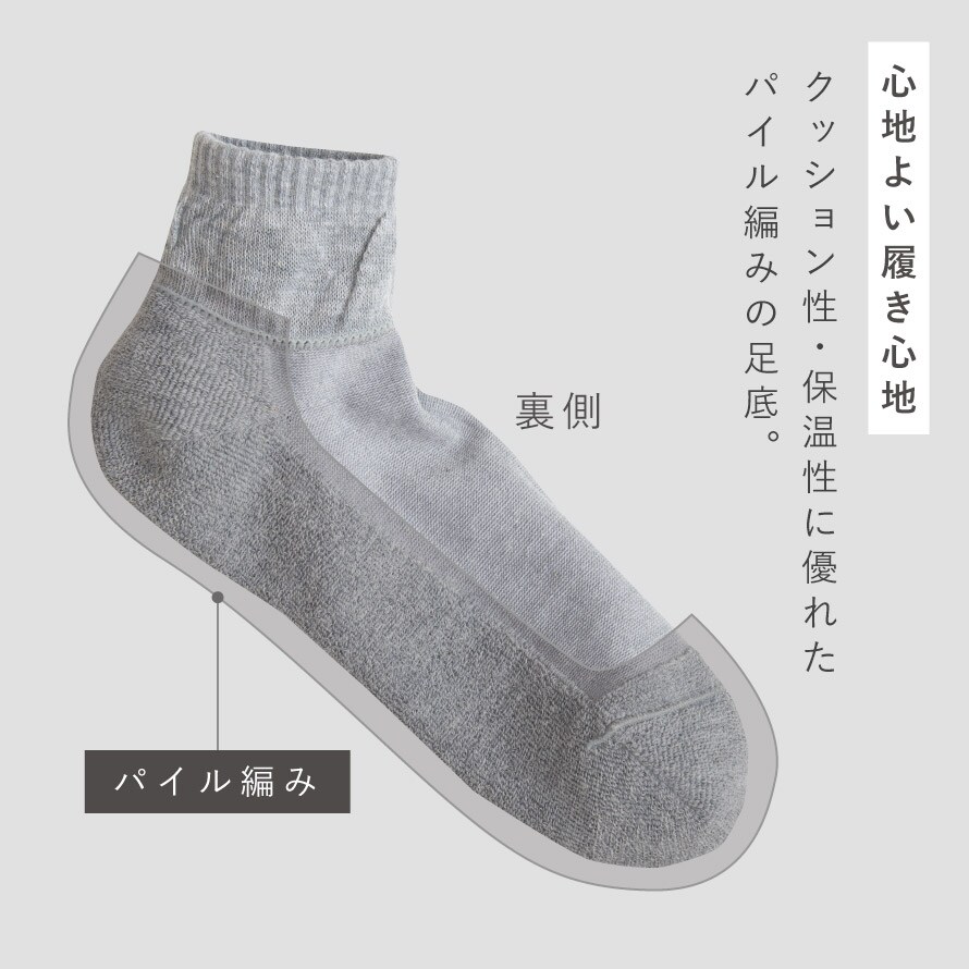 足底はクッション性、保温性が高いパイル編み。歩くたびに気持ち良い踏み心地です。