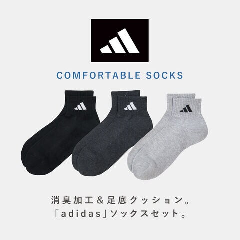 足底パイル&消臭機能のアディダスソックス3色セット。