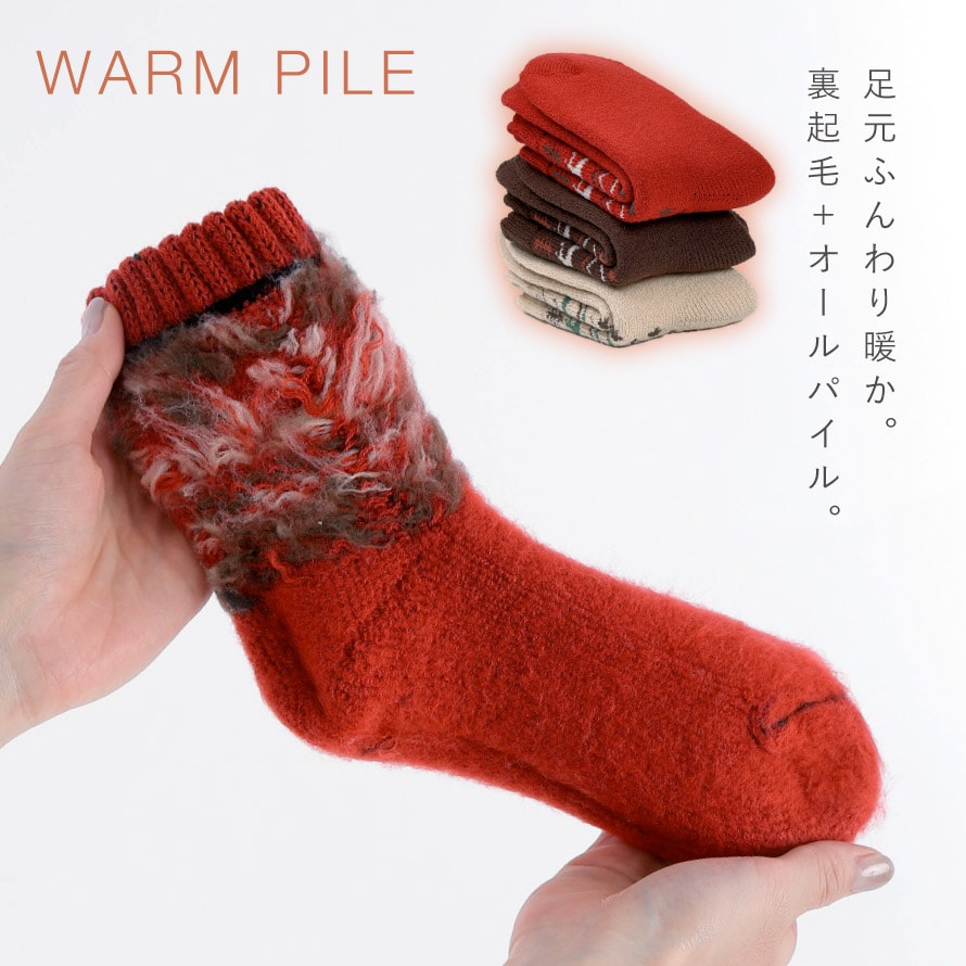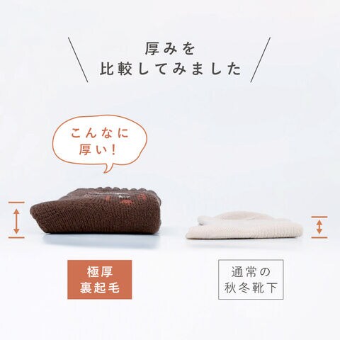 裏起毛+オールパイルがふんわりと足全体を包み込み、履いた瞬間から暖かく感じられる、極厚の秋冬靴下です。