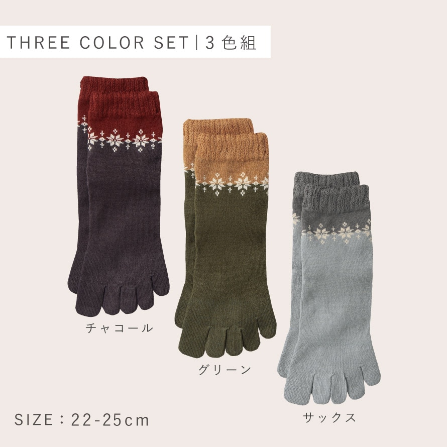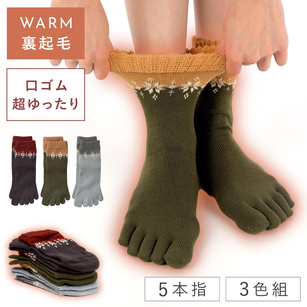 五本指ソックス レディース 暖かい 靴下 冬 22-25cm 3色組 裏起毛 履き口 ゆったり 締め付けない シニア 高齢者 5本指ソックス 五本指靴下 裏起毛パイルびよ~んつま先・かかとパイル5本指ソックス