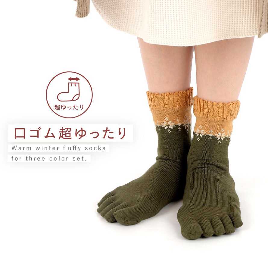 五本指ソックス レディース 暖かい 靴下 冬 22-25cm 3色組 裏起毛 履き口 ゆったり 締め付けない シニア 高齢者 5本指ソックス 五本指靴下 裏起毛パイルびよ~んつま先・かかとパイル5本指ソックスのレビュー