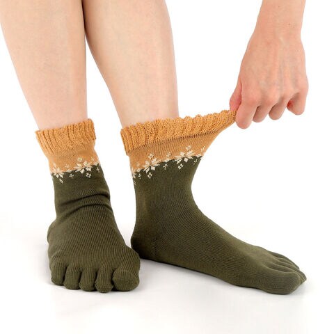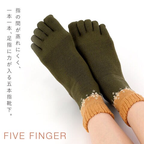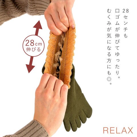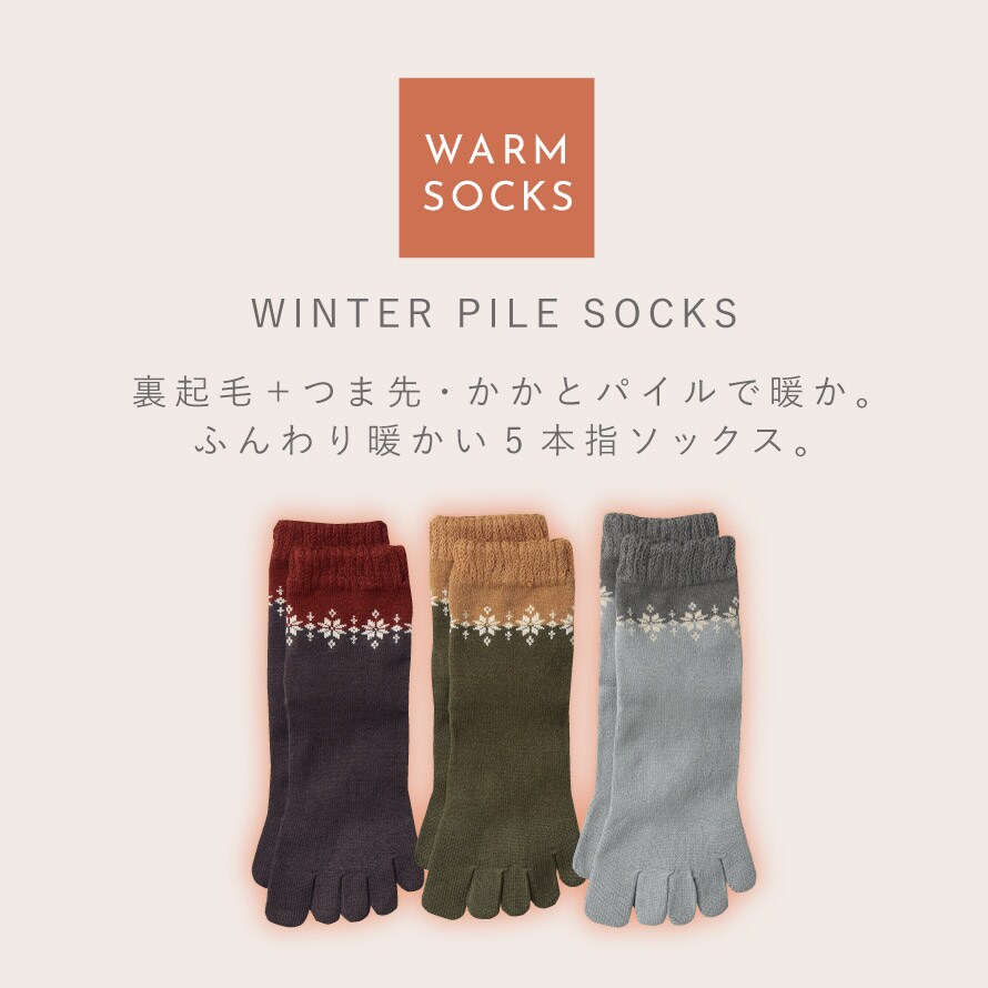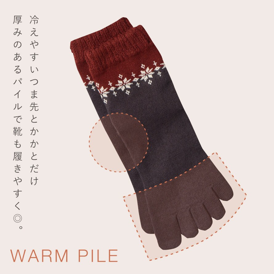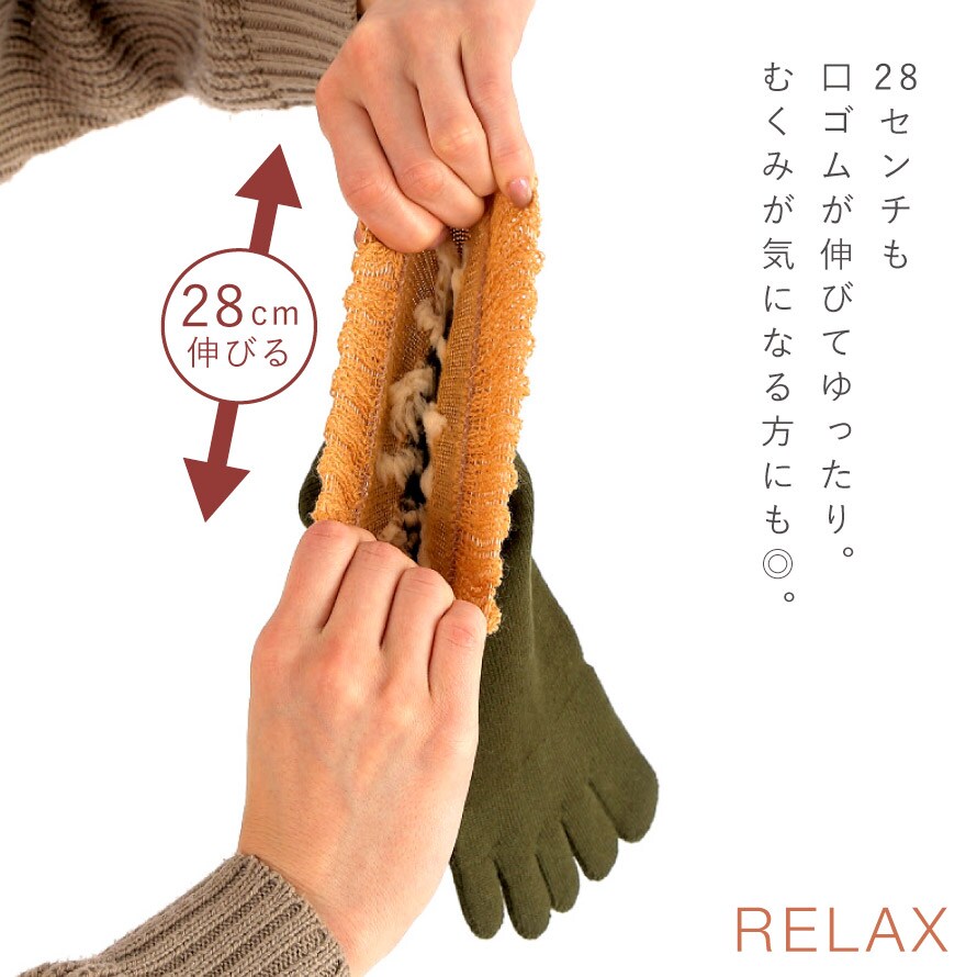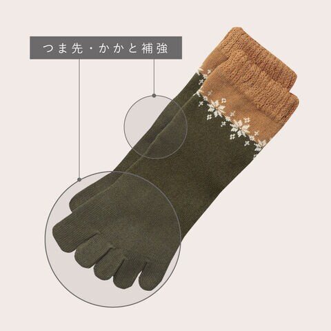 裏起毛+つま先&かかとパイル、口ゴムゆったりの5本指靴下。