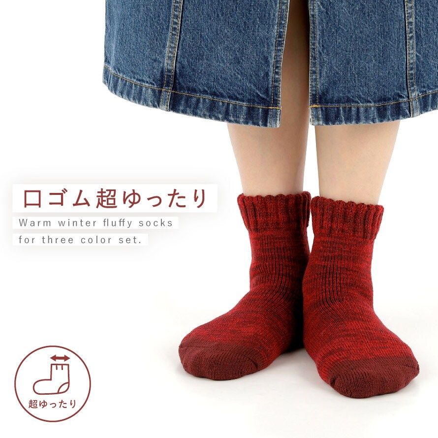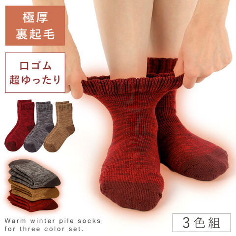 靴下 レディース 暖かい 冬 22-25cm 3色組 裏起毛 履き口 ゆったり 締め付けない シニア 高齢者 ゆるめ 秋冬 裏起毛パイルびよ~んシンプルソックス