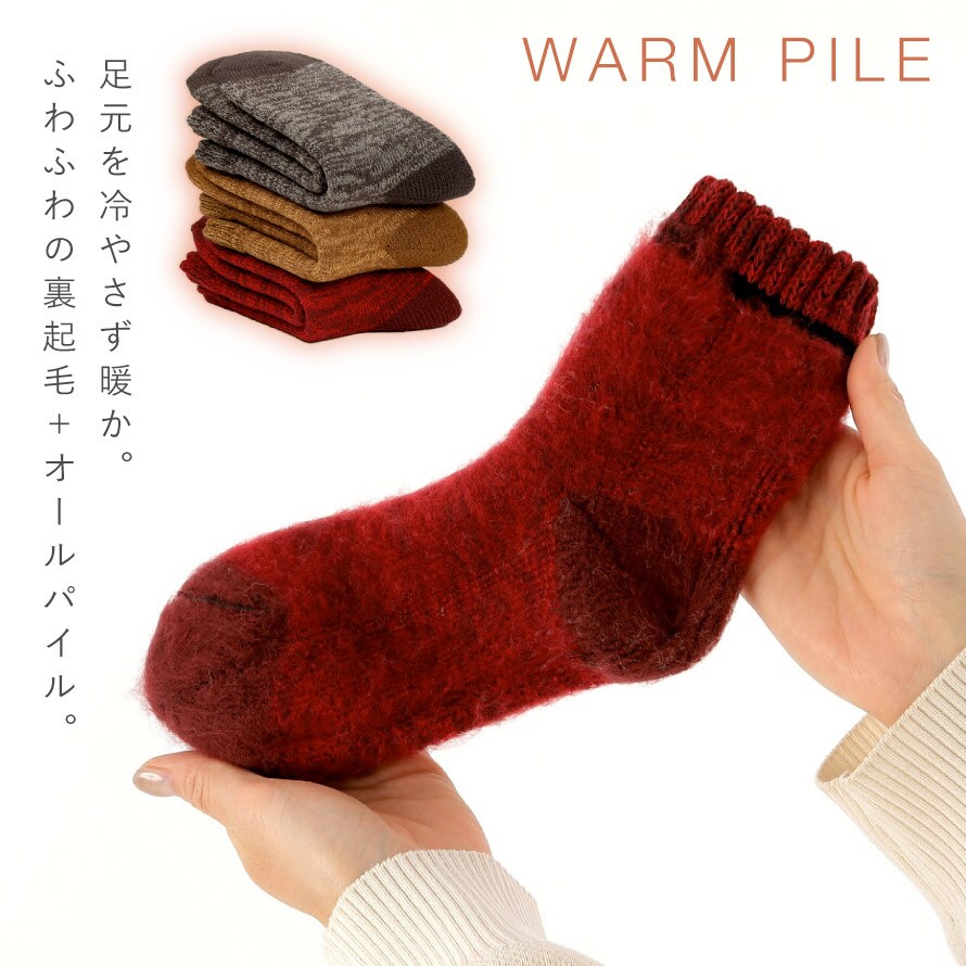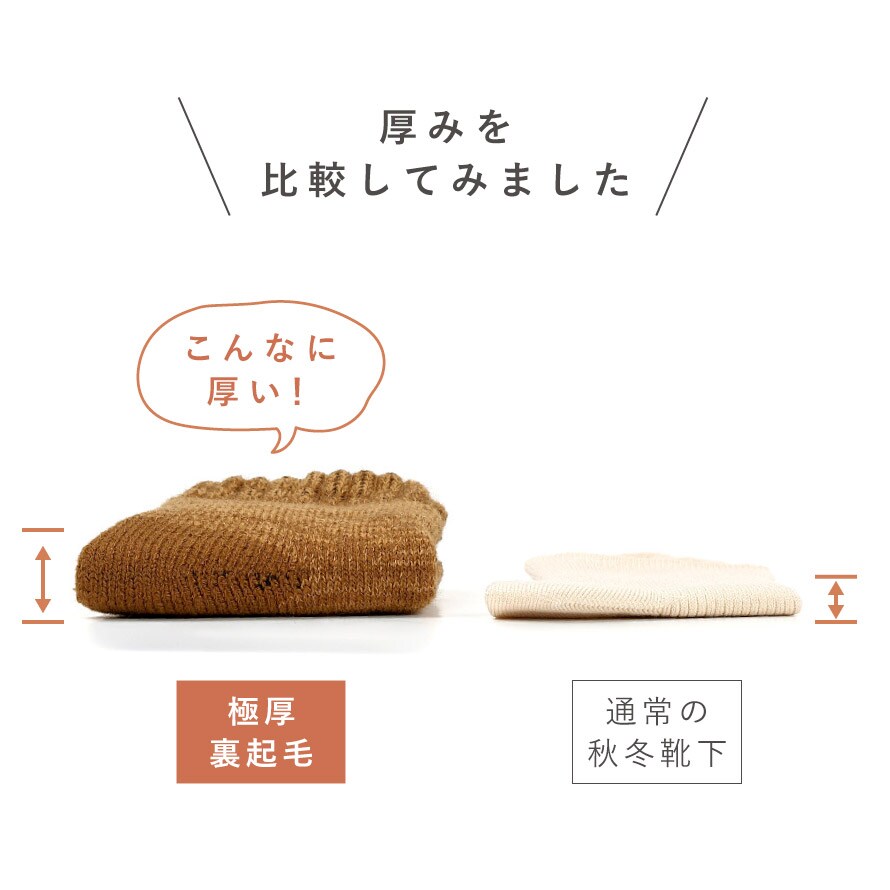 裏起毛+オールパイルがふんわりと足全体を包み込み、履いた瞬間から暖かく感じられる、極厚の秋冬靴下です。