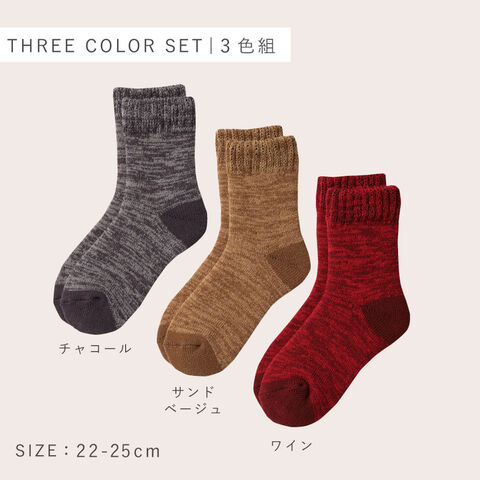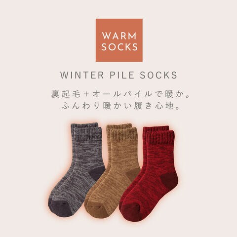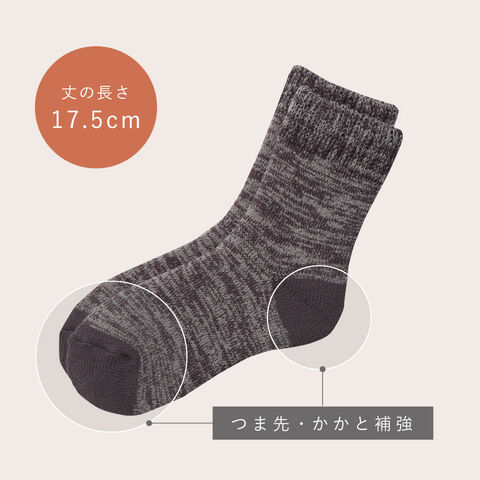 無地でシンプルなのでどんな服装にも合わせやすく、冬らしいカラーに温かみを感じるソックスセット。寒い地域にお住まいの方にもご納得いただける、非常に暖かい靴下です。