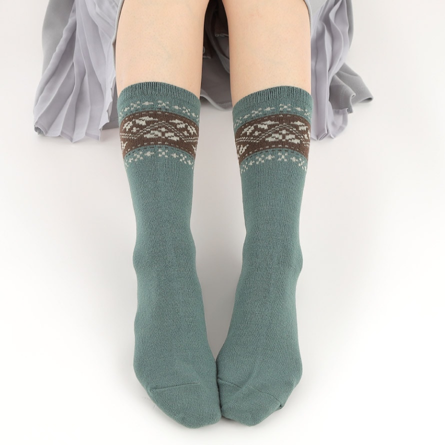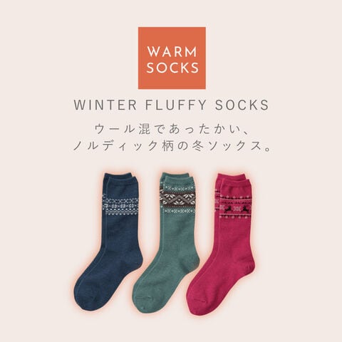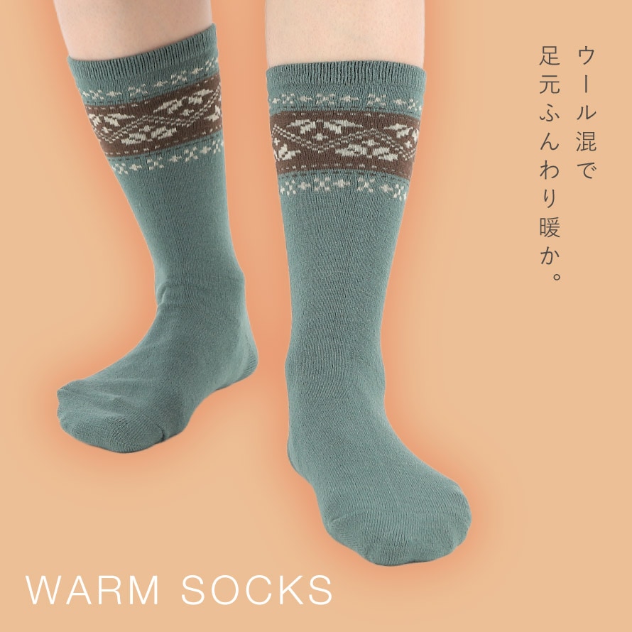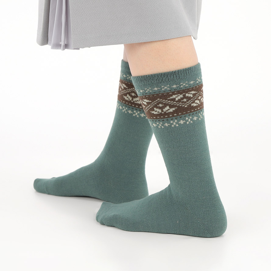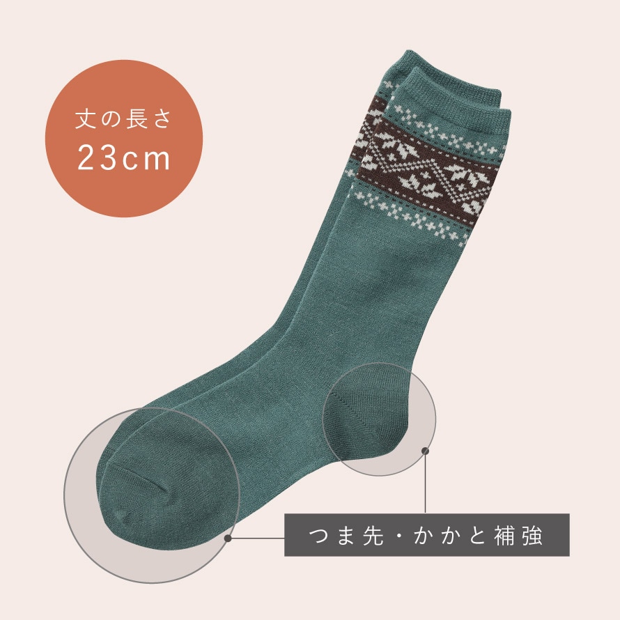 毛混であったか、ノルディック柄と濃いめのカラーが冬らしい丈長靴下。