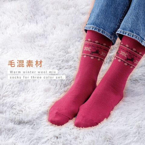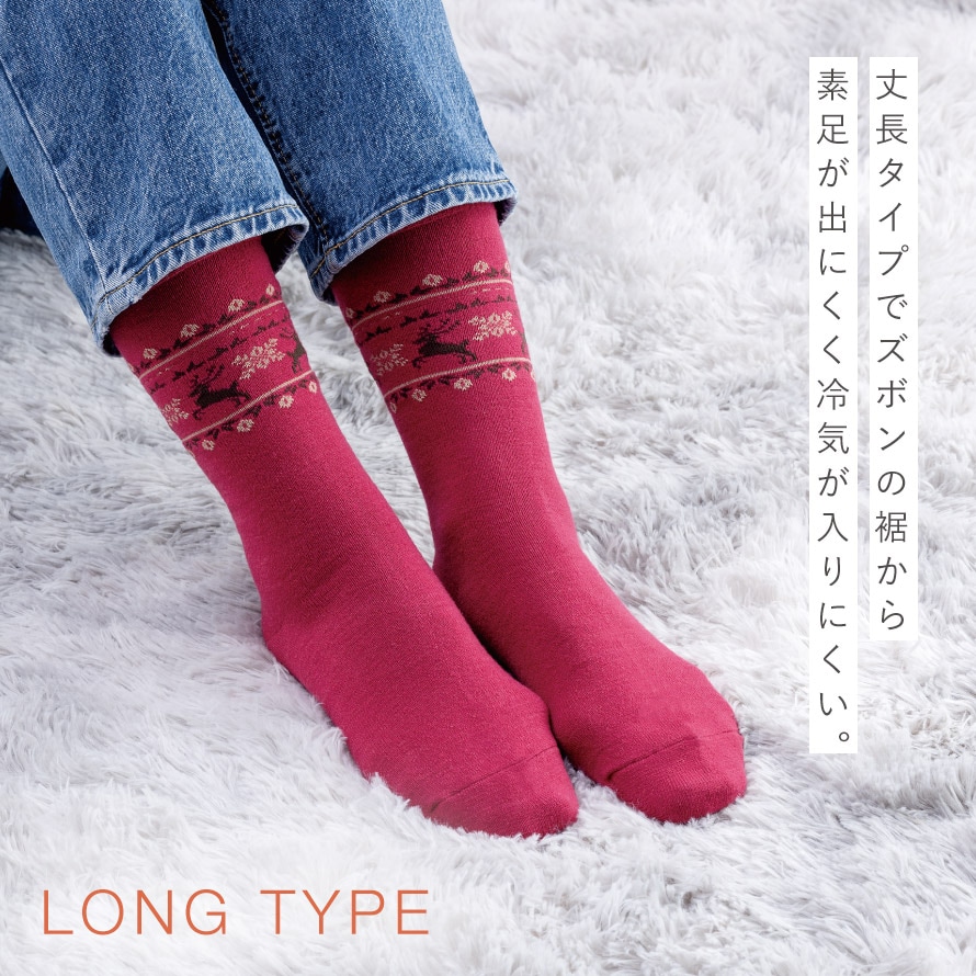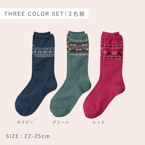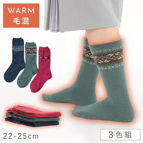 ノルディック柄 靴下 レディース 22-25cm 3色組 秋冬 長め 暖かい おしゃれ あったかノルディック柄丈長ソックス