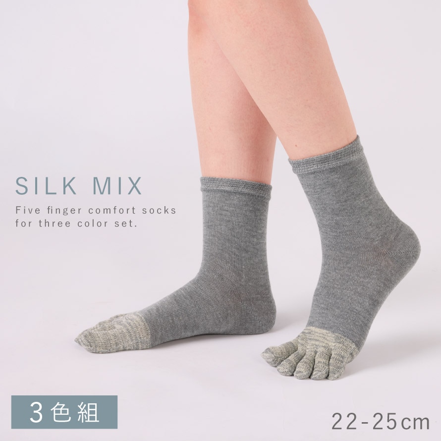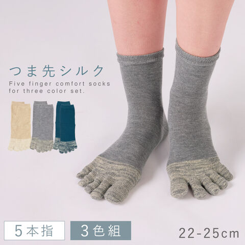 五本指ソックス レディース 靴下 シルク 3色組 22-25cm 5本指靴下 まとめ買い 3足 つま先シルクの快適5本指ソックス