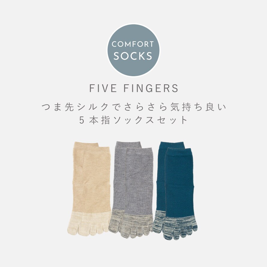 つま先シルクでさらさら気持ち良い、5本指ソックスセット。