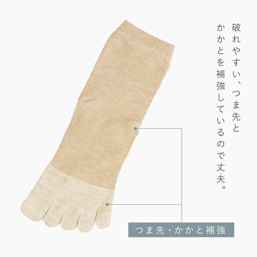 破れやすい、つま先・かかとを補強しているので丈夫です。