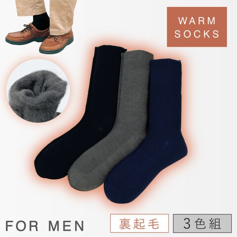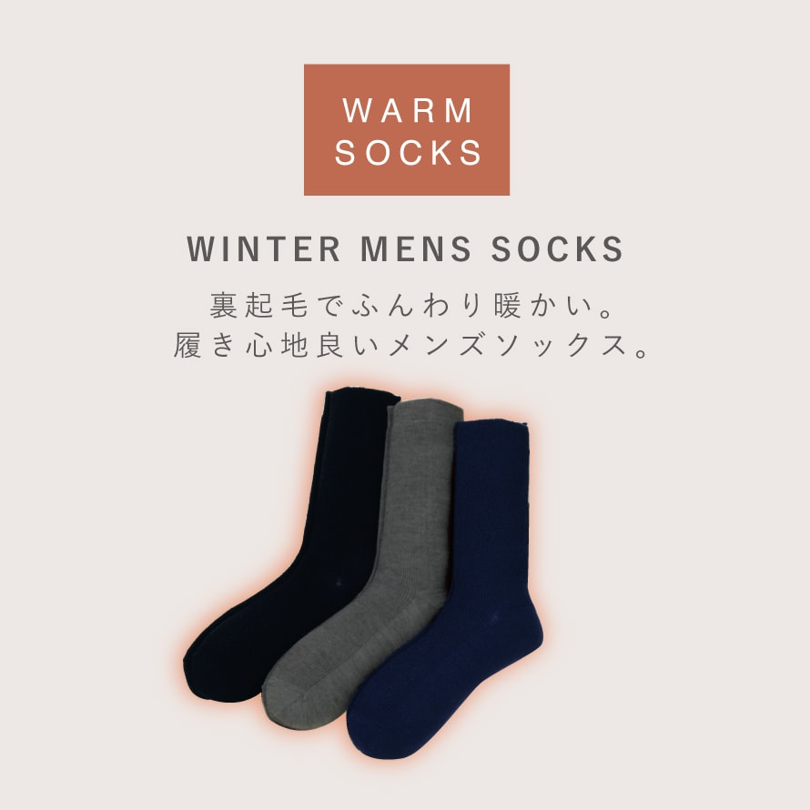 靴下 メンズ 暖かい 冬 25-27cm 3色組 裏起毛 あったか 紳士 黒 ビジネス 秋冬 裏起毛メンズウォームソックス
