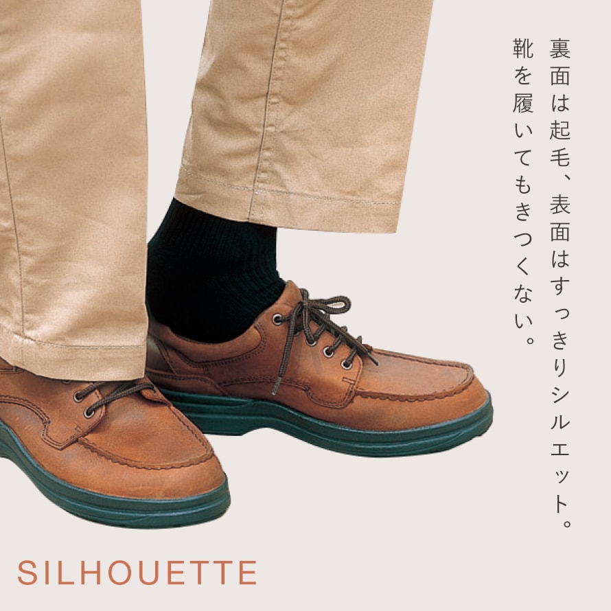 裏起毛でふんわりあったか。すっきりシルエットのメンズソックス。