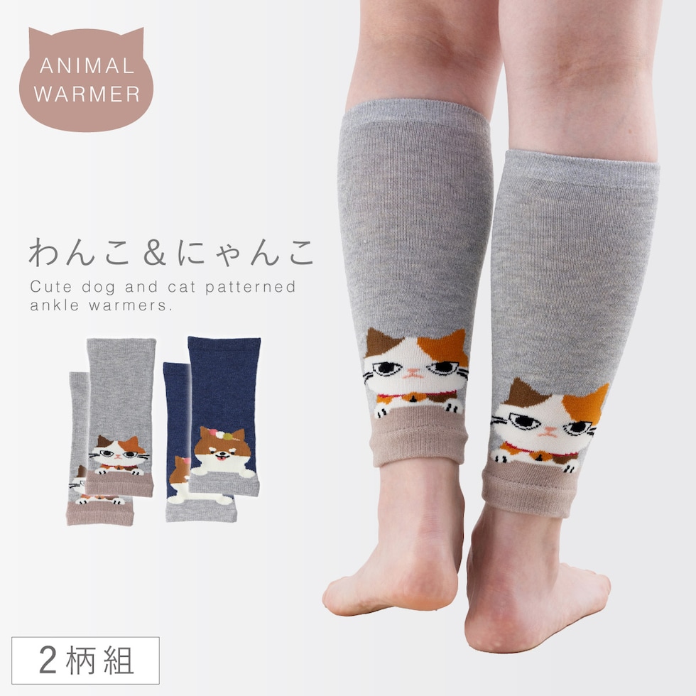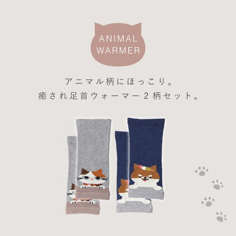 レッグウォーマー 2色組 レディース ゆったり 犬 猫 かわいい 可愛い ウォーマー アニマル足首ウォーマー