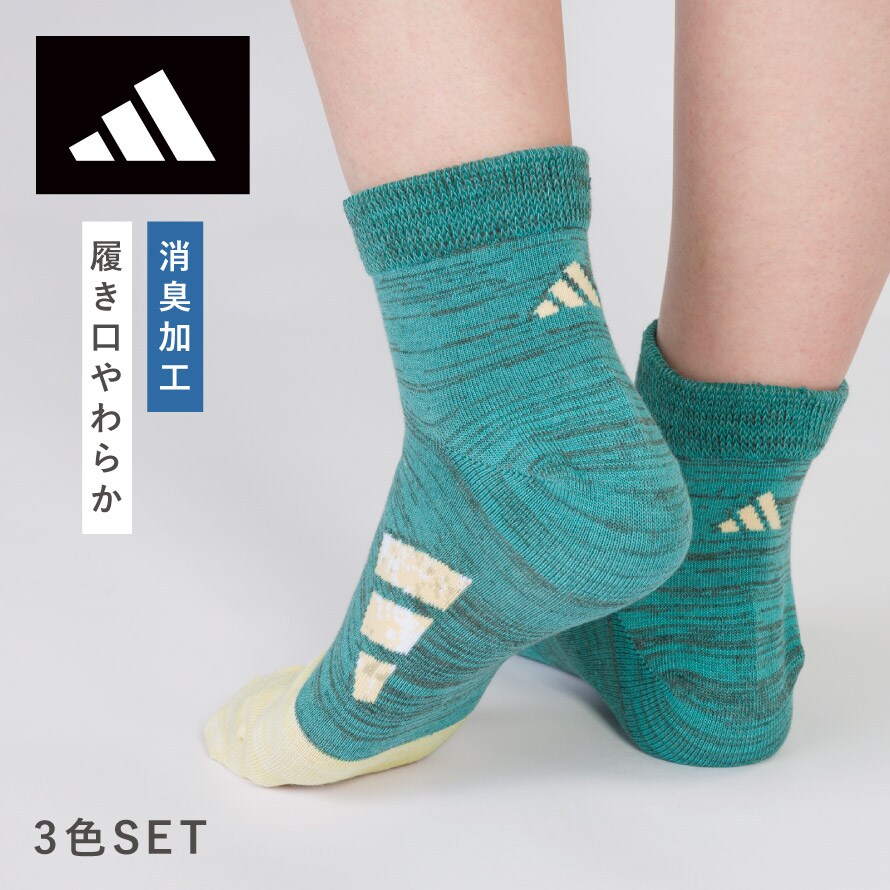 アディダス 靴下 ジュニア メンズ 3色組 22-24cm 24-26cm 26-28cm adidas アディダスソックス 3足 消臭 ゆったり スポーツ ブランド アディダスゆったり消臭ツートーンソックス