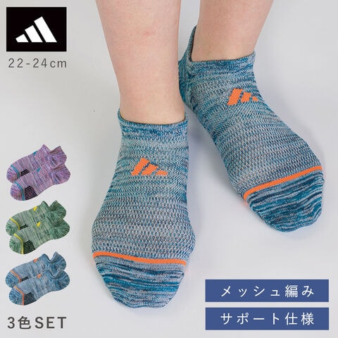 アディダス 靴下 ジュニア メンズ 3色組 22-24cm 24-26cm 26-28cm adidas アディダスソックス 3足 スニーカー くるぶし メッシュ 夏 涼しい スポーツ ブランド アディダス杢調スーパーメッシュソックス