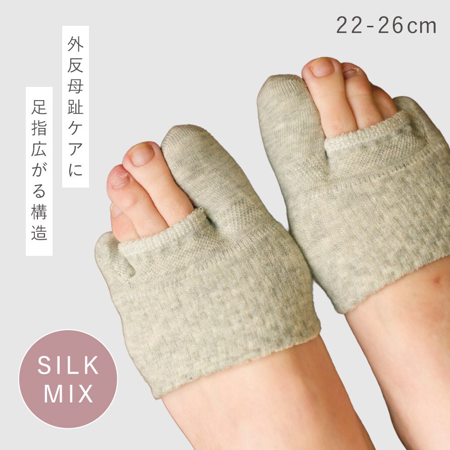 外反母趾 ソックス 足指 広げる 靴下 レディース 22-26cm 二本指ソックス シルク 肌側シルク外反母趾ケアサポーター(2本指タイプ)
