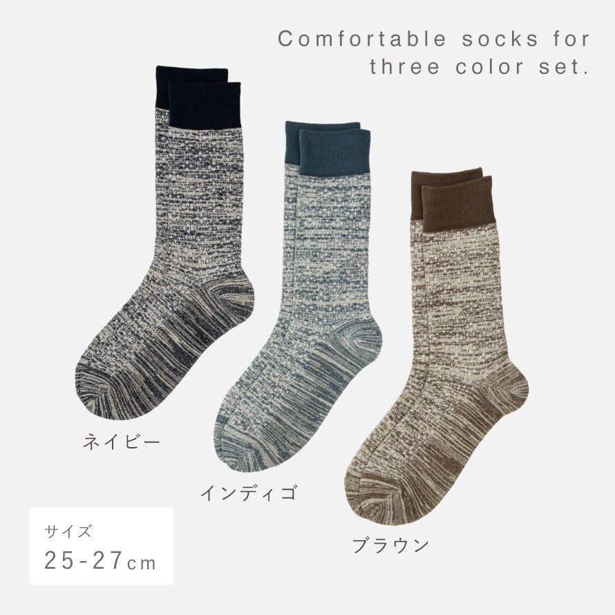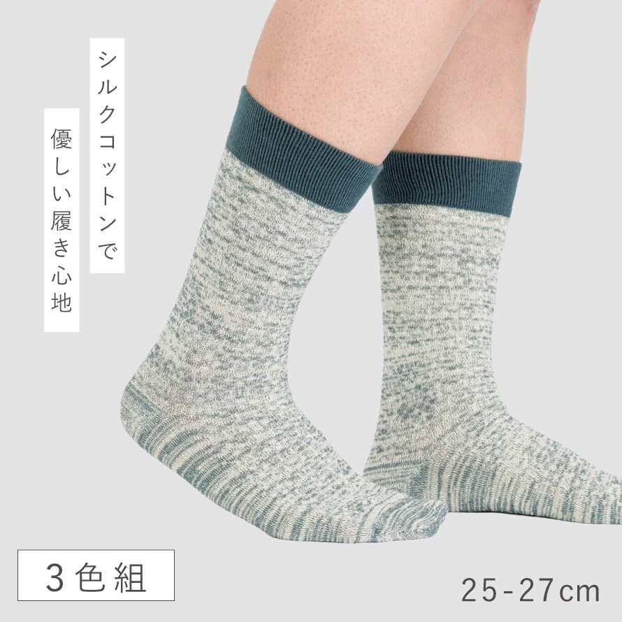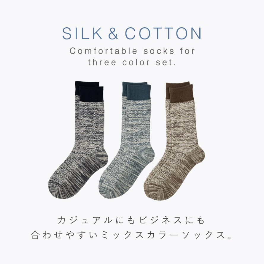 靴下 メンズ シルク コットン ソックス 3色組 25-27cm 男性 シニア ツートンカラー カジュアル 3足 まとめ買い シルク&コットンメンズソックス