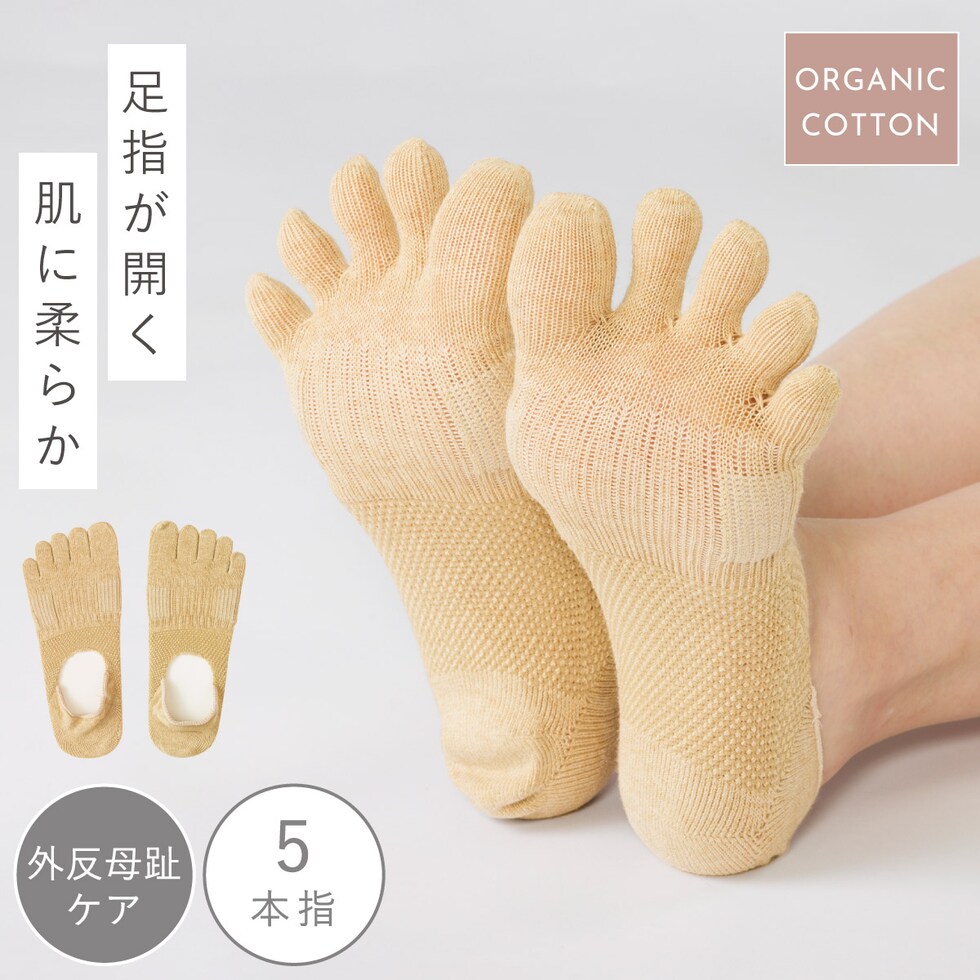 外反母趾 ソックス オーガニックコットン 日本製 足指 広げる 靴下 カバーソックス 脱げにくい 五本指ソックス 5本指 オーガニックコットン外反母趾ケア5本指カバーソックス