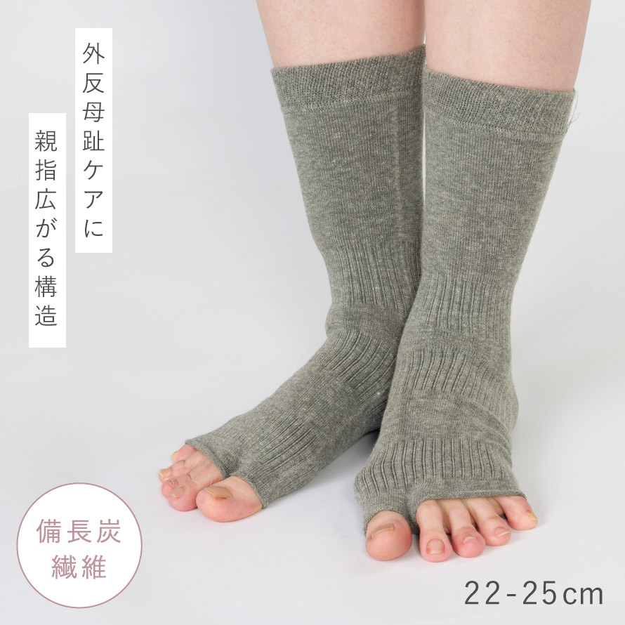 外反母趾 ソックス 足指 広げる 靴下 レディース 22-25cm 備長炭 消臭 保温 日本製 つま先なし オープントゥ 備長炭外反母趾ケアタビ型サポーター