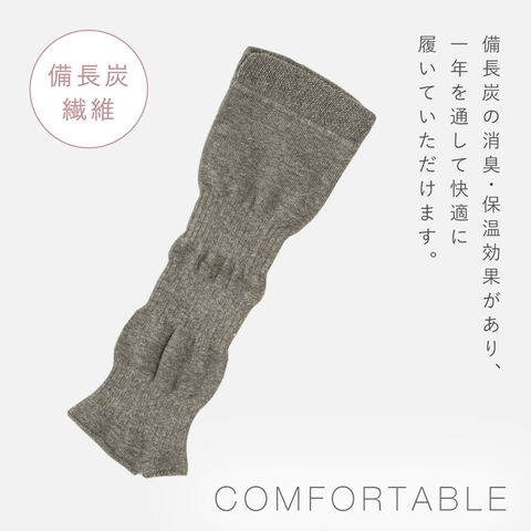 備長炭の消臭・保温効果があり、一年を通して快適に履いていただけます。