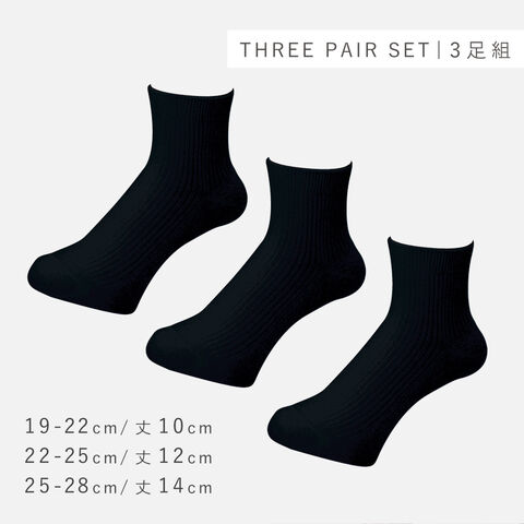 ショート丈のブラックソックス3足セット。