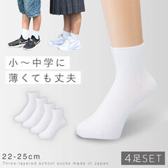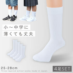 毎日の通学や部活動にもぴったりの丈夫な作り。洗い替えに便利な4足セットで、汚れてもすぐに替えられて安心です。片方がダメになっても組み替えて使えるのも◎。