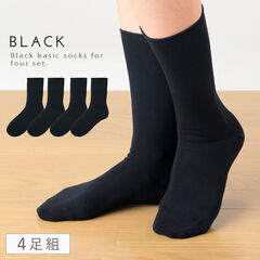 着圧ソックス レディース 4足組 22-25cm ハイソックス 着圧 靴下 ブラック 黒 むくみ 解消 ふくらはぎ 足首 ぴったりフィット着圧ハイソックス