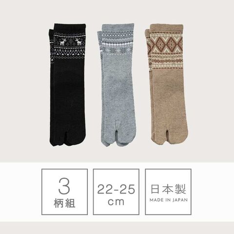 履き口 ゆったり 足袋ソックス レディース 冬 靴下 【3色組】 22-25cm 足袋 秋冬 ウール混 暖かい ノルディック 【 履き心地の良い足袋ソックス 】 口ゴムゆったり 締め付けない ゆるめ むくみ 介護 高齢者 シニア まとめ買い 3足 口ゴムゆったりあったかタビソックス