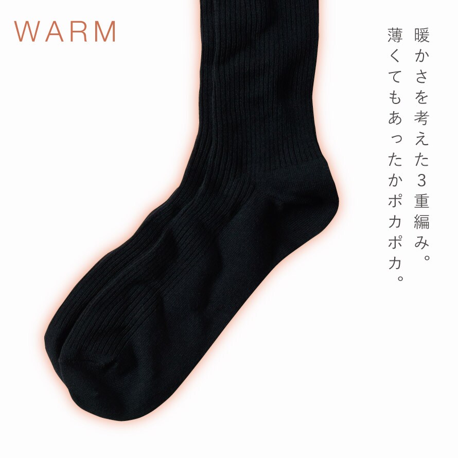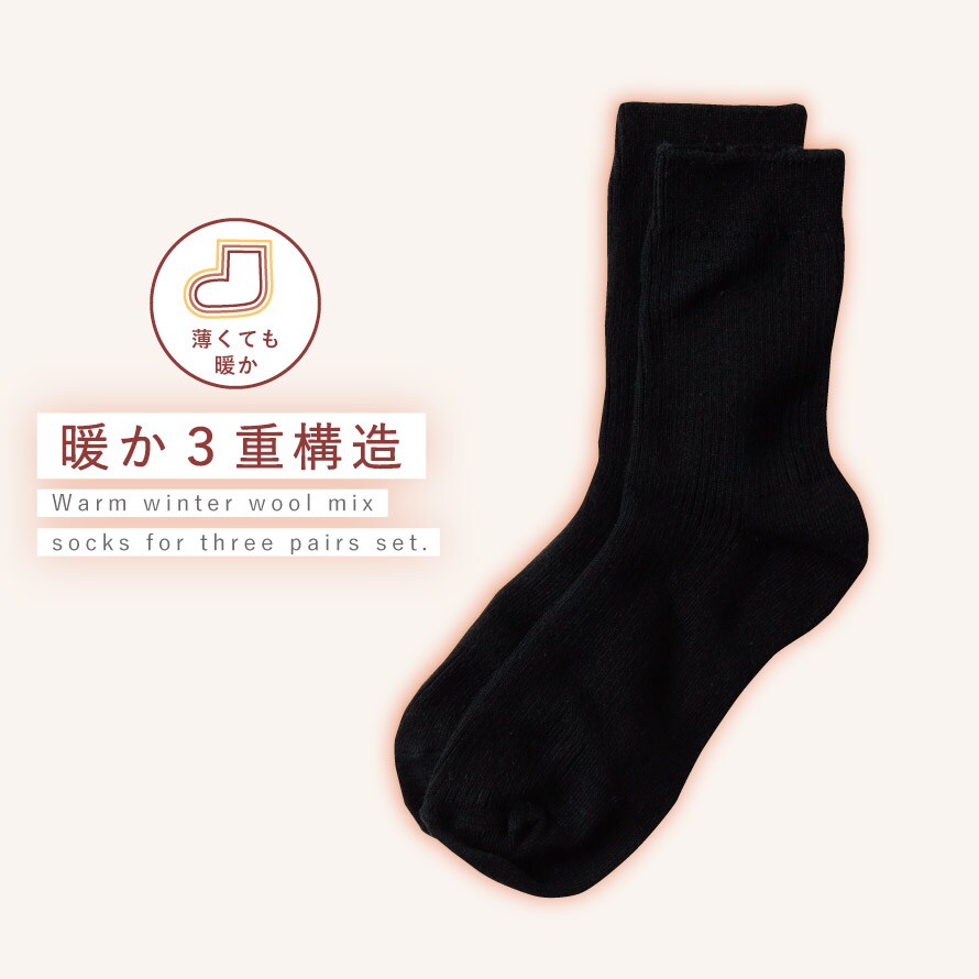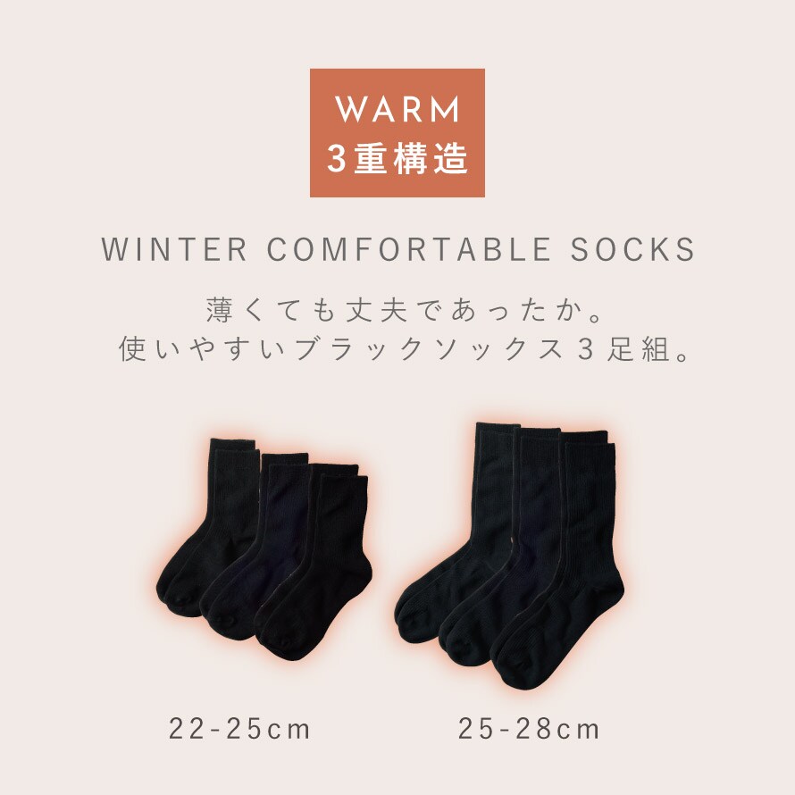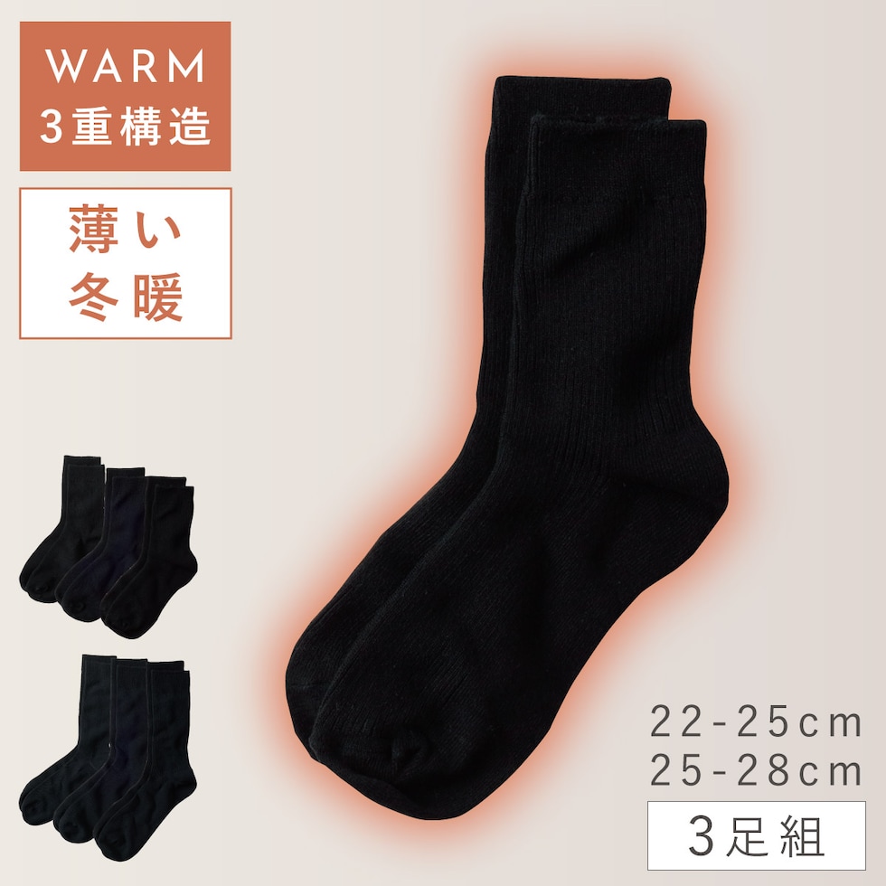 3重構造で薄くてもあったかい。合わせやすいブラックソックス3足セット。