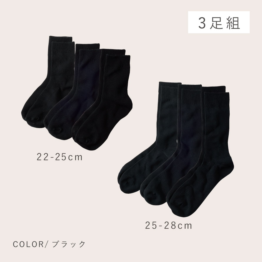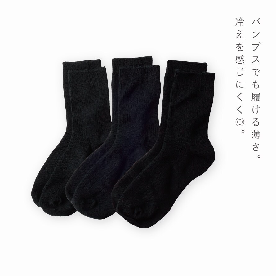 どんなお洋服にも合わせやすい、黒の3足組。