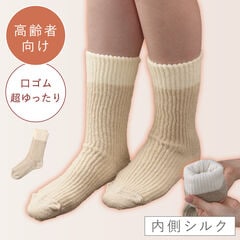 外側にあったかい毛混、お肌に当たる内側には肌触り優しいシルク14%を使用。起毛タッチで柔らかく、ふんわり気持ち良い履き心地です。