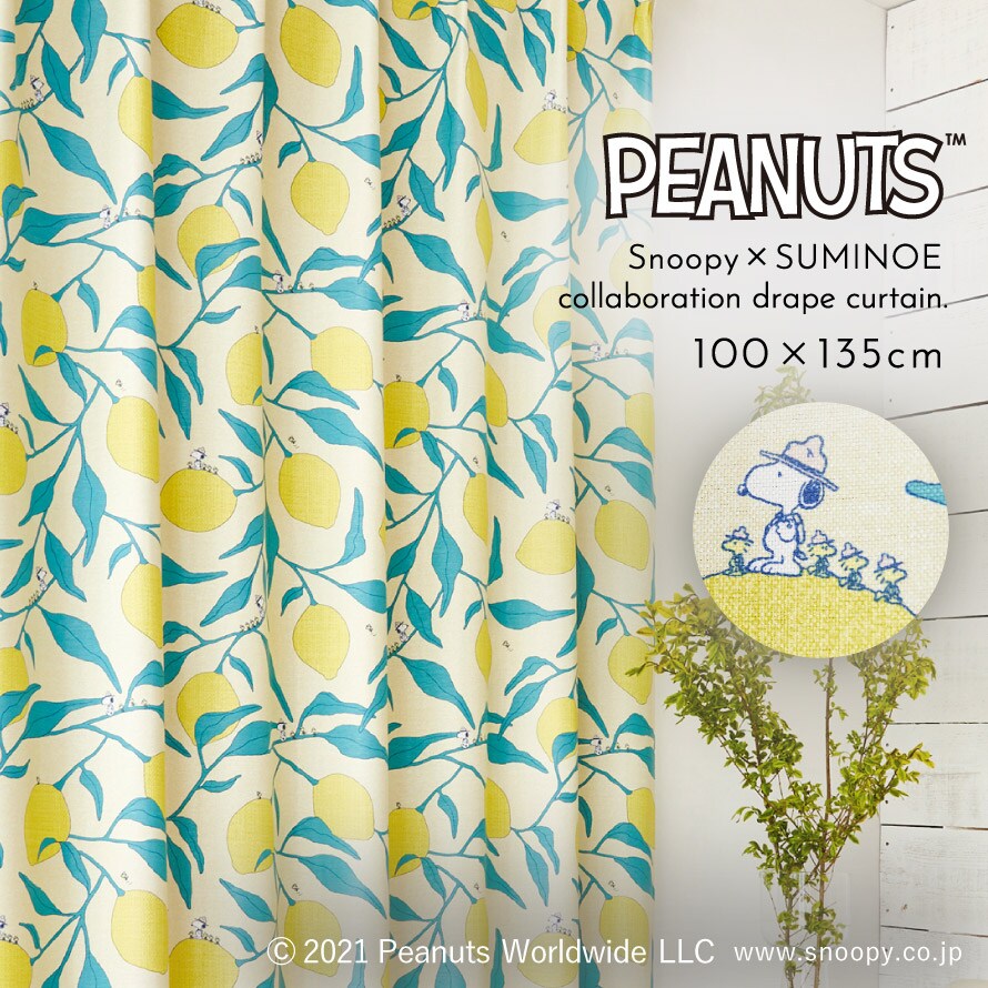 スヌーピー カーテン 遮光 100×135cm 遮光カーテン PEANUTS ピーナッツ Snoopy インテリア 北欧 レモン イエロー キャンプレモン ドレープ 1枚 日本製 洗える おしゃれ 形状記憶加工 スミノエ SUMINOE