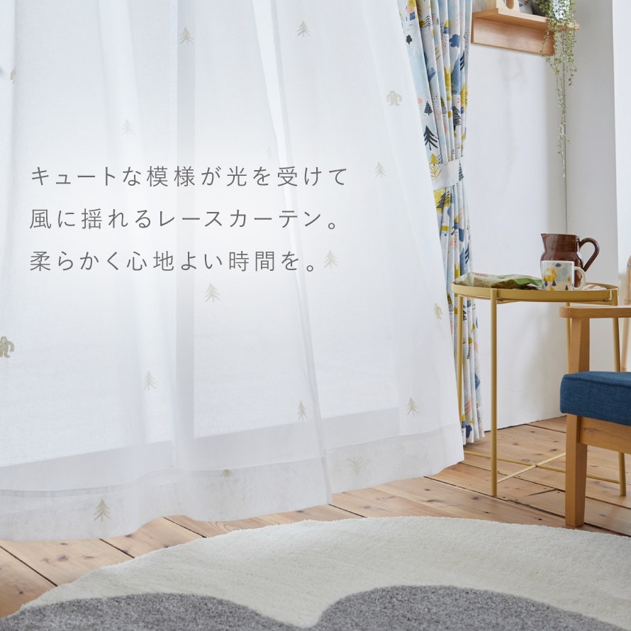 光が透け、風に揺れるとほっこり日向ぼっこ気分。お部屋を明るく広く演出するレースカーテン。リビングやダイニング、寝室など色々なお部屋でご使用いただけます。