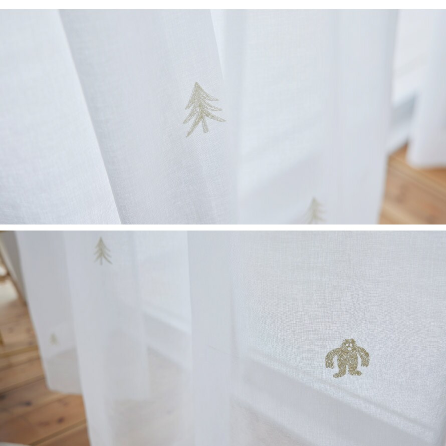 雪山で暮らすイエティと針葉樹を刺繍糸で丁寧に表現。楽しいデザインで明るいお部屋に。