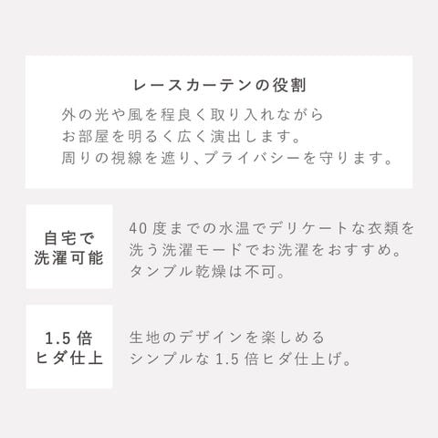 | 備考 | 洗濯機OK、非防炎、既製カーテン75mm芯地1.5倍ヒダ、アジャスターフック付き |
